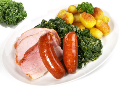 Moi lecker Ammerländer Grünkohl mit Pinkelwurst und Kasseler, dazu servieren wir Ihnen nach Wahl Salzkartoffeln oder Bratkartoffeln